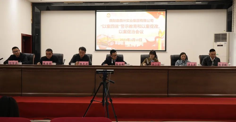 【3月12日訊 陳鵬】 3月10日下午,酉州實業集團組織召開“以案四說”警示教育和以案促改、以案促治專題會,集團公司全體干部職工參加會議,會議由集團黨總支書記、董事長張宗銀主持。大會傳達學習了酉陽縣國資金國企系統“以案四說”警示教育和以案促改、以案促治會議精神;集中觀看了警示教育專題片《官商勾結的國企碩鼠——重慶市華茂投資責任有限公司原董事長楊春曉案件警示錄》;通報了集團公司前階段開展以案促改、以案促治工作的情況和制定完善的制度規定。集團黨總支委員、副總經理分別進行了以案說紀、以案說法、以案說德、以案說責;班子成員、部分黨員、關鍵崗位職工結合自身實際談認識談感受。