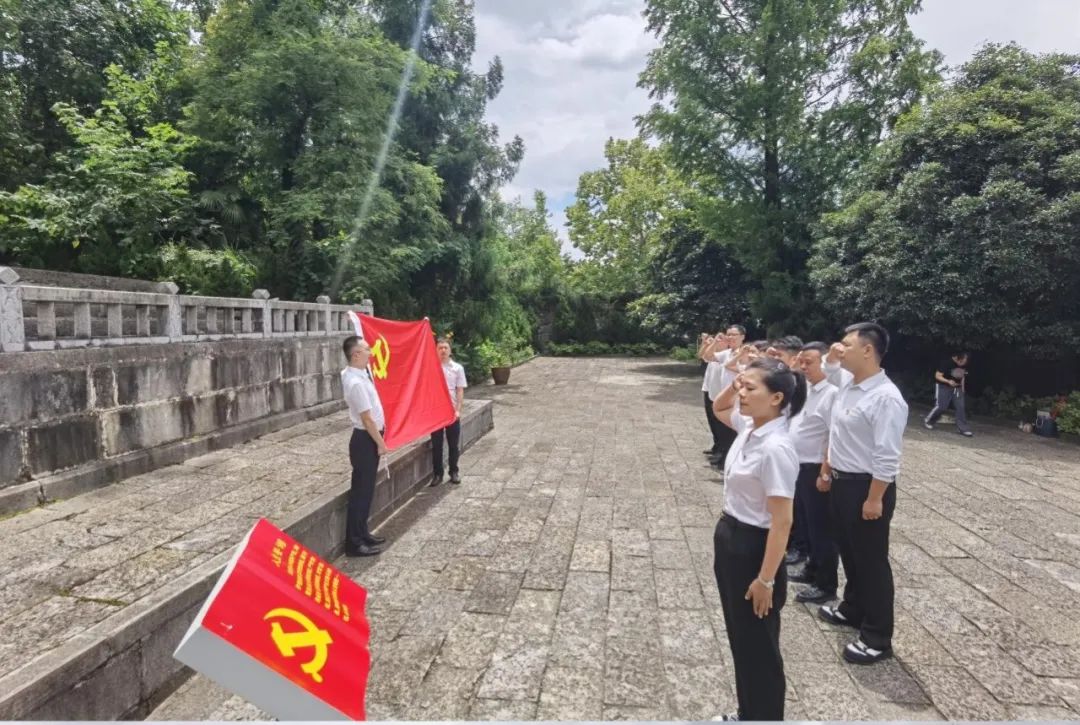 重溫入黨誓詞,永葆入黨初心。在紅軍烈士碑前,全體黨員整齊列隊、莊嚴肅穆,由房地產支部黨員王雪帶領大家重溫入黨誓詞。全體黨員舉起右拳,面向鮮紅的黨旗莊嚴宣誓,用鏗鏘有力的聲音,表達出對黨的無限忠誠和為共產主義事業奮斗終身的堅定決心。