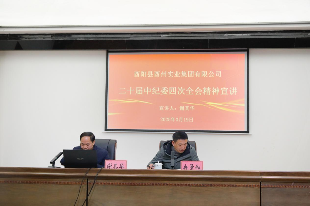 【3月20日訊 楊宜霖】 為深入學習宣傳貫徹二十屆中紀委四次全會精神,教育引導集團全體黨員干部深入理解、全面把握其精神實質和核心要義。3月19日上午,集團按照縣紀委統一部署,舉行二十屆中紀委四次全會宣講。縣紀委派駐財政局紀檢監察組組長謝其華作專題宣講,集團領導班子、中層副職以上干部、全體黨員參加會議。